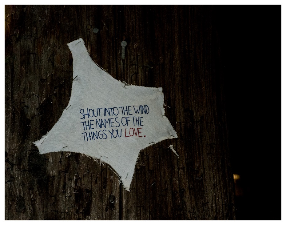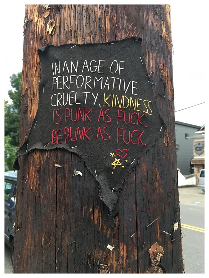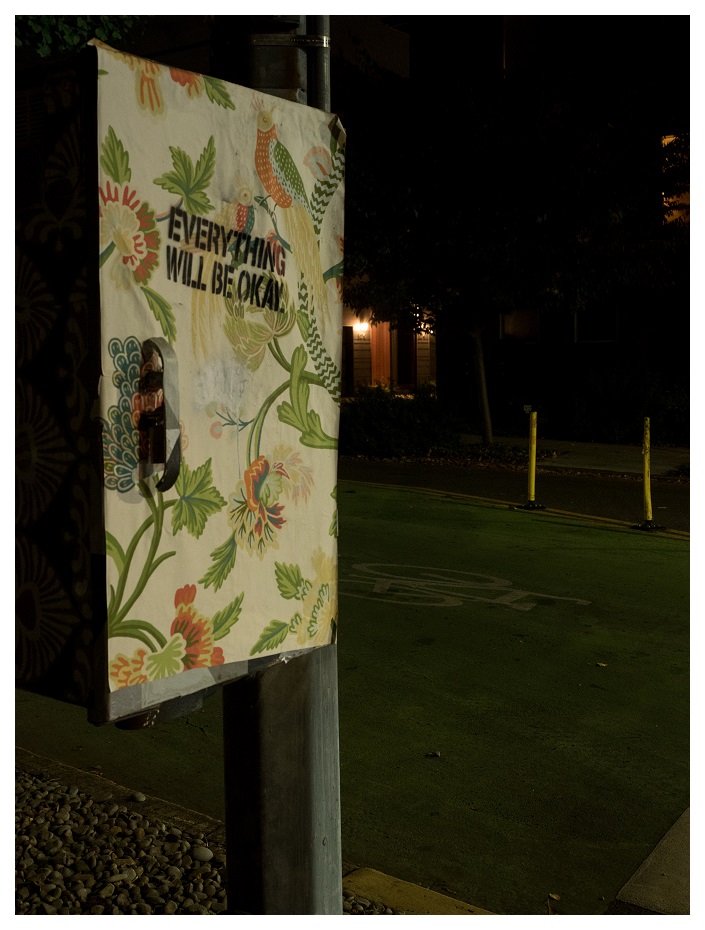 Portland Street Art: Unusual Materials Street Art in Portland, Oregon made from unusual materials like yarn, embroidery floss, plaster, wood and a TV Crocheted Cityscape in Fo-Po Fiber mural by Jo Hamilton. Masks on electrical poll Sitchwork by local embroidery artist Shana Lee Hampton. Next few images are also her work. Memento Mori woodburning on Hawthorne Boulevard. I’ve seen a few woodburnings around recently, not sure it’s all the same artist. Black Lives Matter woodburning near a bus stop. This electrical box in the Richmond Neighborhood always has fancy wallpaper on it, that changes every few months. A TV watches you on Hawthorne. Share this: Click to share on X (Opens in new window) X Click to share on Facebook (Opens in new window) Facebook Like Loading...